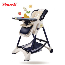 Pouch 帛琦 欧式婴儿餐椅儿童多功能宝宝餐椅可折叠便携式吃饭桌椅座椅K05 藏青色